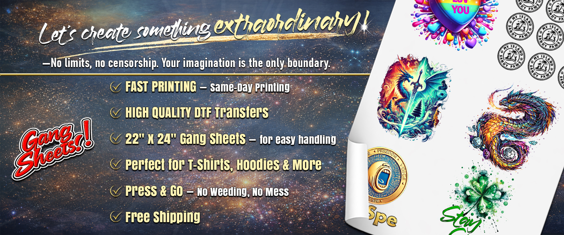 DTF Gang Sheets – Ready to Press, Easy to Handle